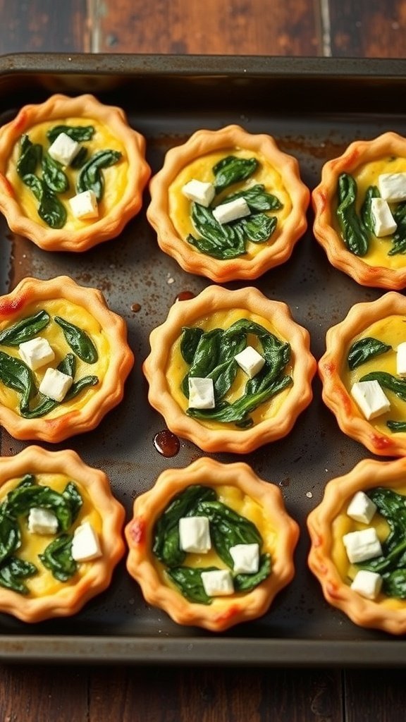 3. Evenly distribute the chopped spinach and crumbled feta into each pastry shell.